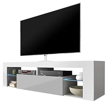 140 Cm Blanc Mat Blanc Brillant Avec Eclairage Led Meuble Tv