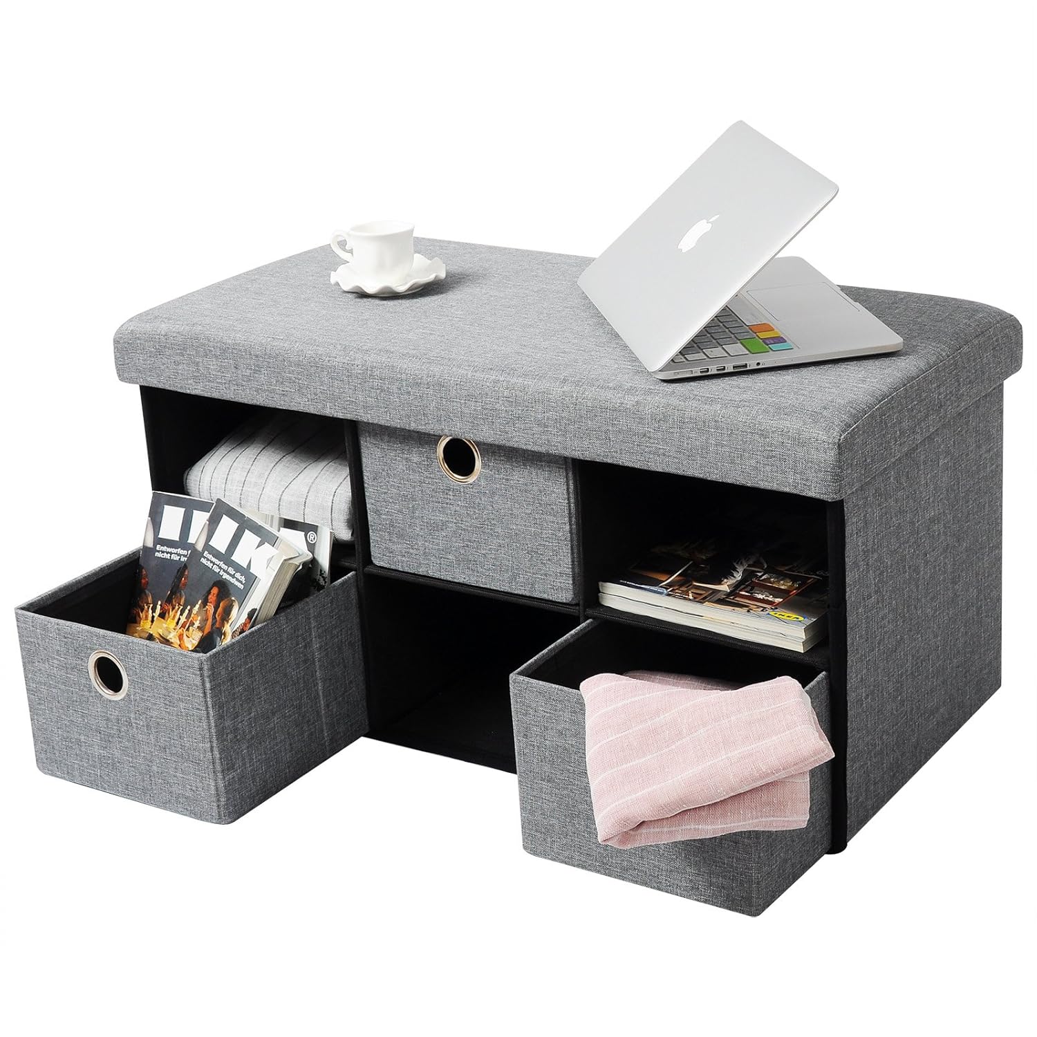 Coffre Banc Pliable Avec Rangements Famille Pouf Salon