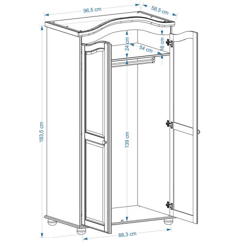Armoire en pin massif blanc a 2 portes dun grande penderie et dun grande compartiment de rangement dans son interieur.