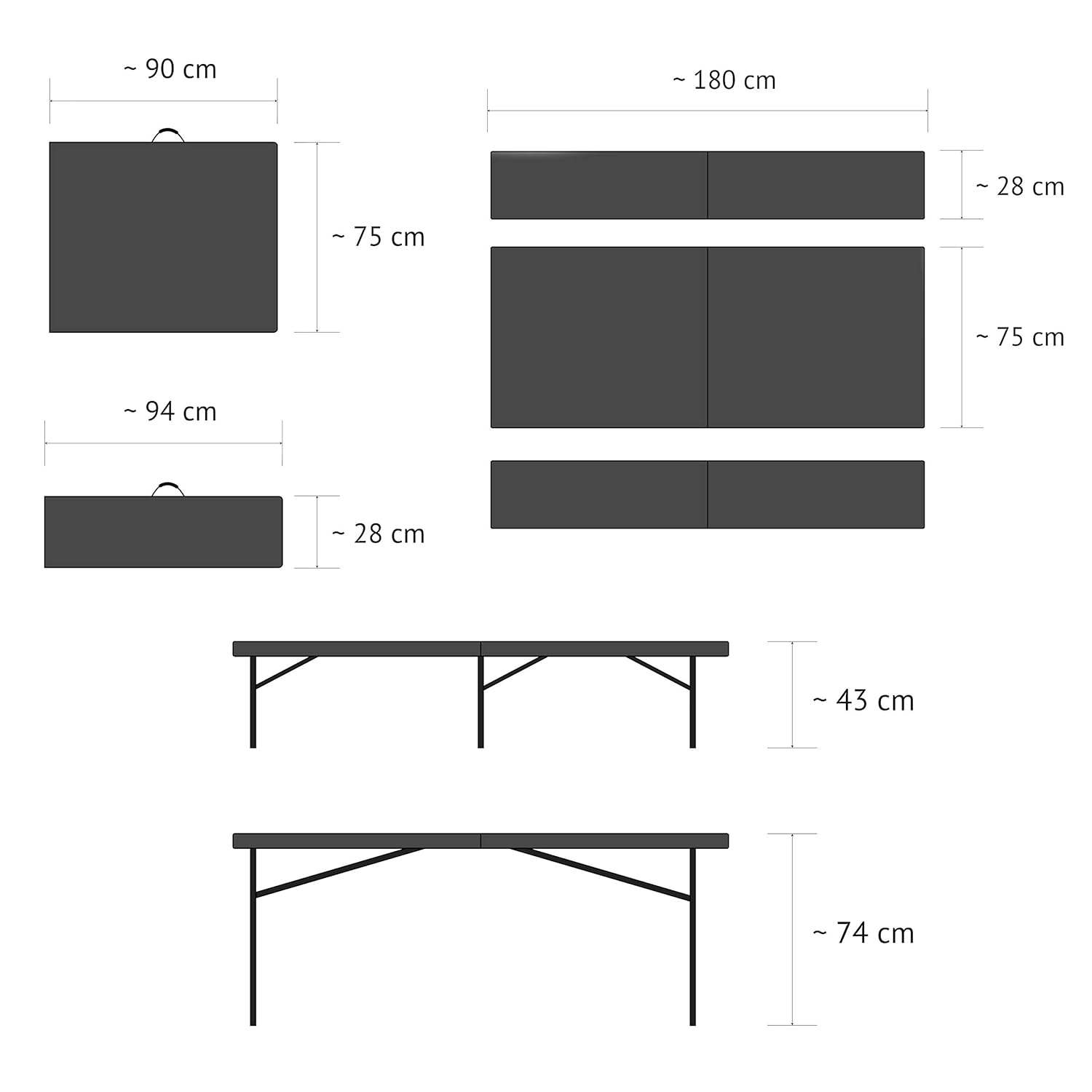 Fp160r Tolland Banc Pliable Aspect Rotin Noir 180 Cm X 25 Cm X 43